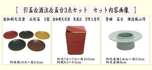 [Kaiseki utensils (kaiseki utensils) sake cups/sake pourers/sake cup stand] Set of 5 gold button brushed five-color sake cups, gold button brushed red sake pourer by Sotetsu Kobo, and celadon sake cup stand by Suwa Sozan