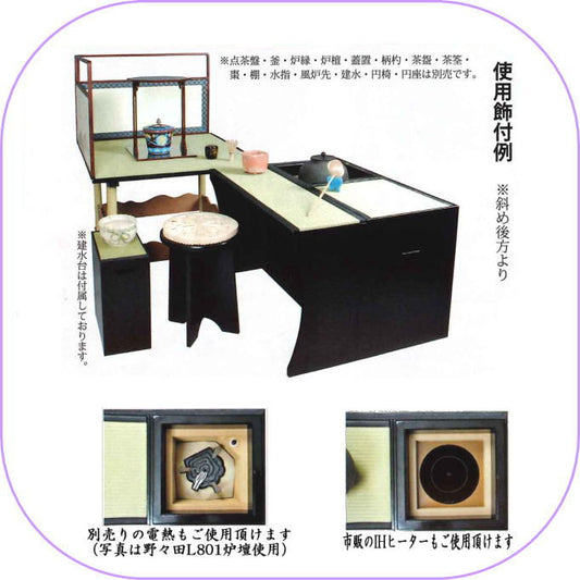 【茶器/茶道具 立礼棚&電熱式電熱器】 炉点前壺々透立礼&電熱式 電熱器セット 中村宗悦作 (建水台付1個・点茶盤用畳・掻合炉縁・炉壇[電熱式L801] 炉壇受[電熱式L900])