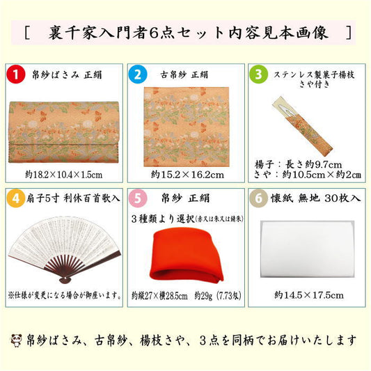 [Tea utensils/tea ceremony set for beginners/lessons/practice] 6-piece Urasenke beginner's set, Yoshunkinran pattern, all pure silk