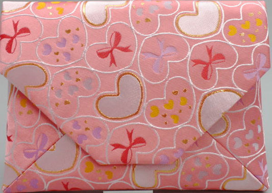 〇 [Tea utensils/tea ceremony utensils for practice/for tea ceremony beginners] 6-piece sukiya bag set for beginners (heart with ribbon) (silk cloth, stainless steel yam)