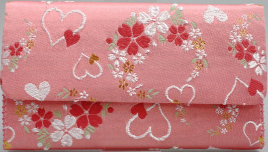 〇【Tea utensils/tea ceremony tools for practice/tea ceremony beginners for girls/women】Beginner's Sukiya bag interwoven 7-piece set (cherry blossoms in heart)