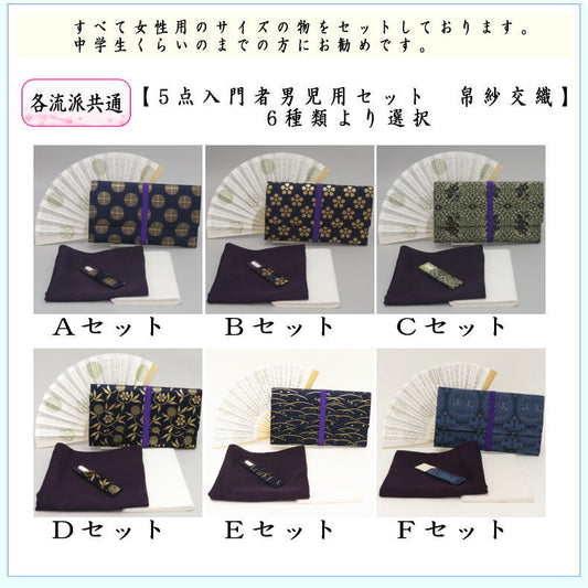 [Tea utensils/tea ceremony utensil set for tea ceremony beginners] Tsuzure 5-piece beginner's set (for each school) (with pure silk cloth and clear case)