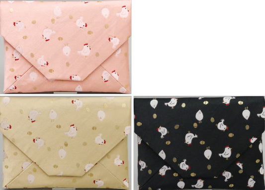 〇 [Tea utensils/tea ceremony tools beginner's set/practice set, zodiac sign "rooster"] Beginner's Urasenke 8-piece set, zodiac pattern, pink, beige or black (Hakusha scissors, Sukiya bag, stainless steel tea spoon)