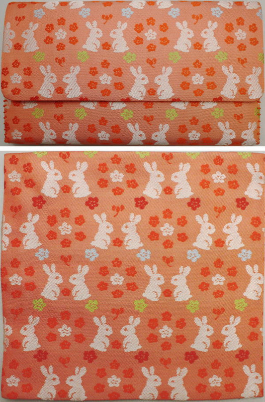 [Tea utensils/tea ceremony utensil set for tea ceremony beginners] 8-piece Urasenke beginner's set (all pure silk, facing rabbit with plum blossoms, folding fan with tamari lacquer, clear case included) usagi rabbit rabbit hare bunn hare hopping lapin