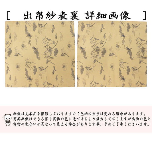 【茶器/茶道具 出帛紗】 唐物帛紗 正絹 紹巴織り 聚光院裂 紹巴織蓮池藻魚図裂 小野澤虎洞筆 北村徳斎製(北村徳斉製) (出服紗・出袱紗・出ぶくさ・だしぶくさ・蜀巴織り・しょは織り)