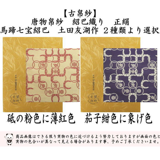 【茶器/茶道具 古帛紗 干支「午」】 干支古帛紗 唐物帛紗 紹巴織り 正絹 馬蹄七宝紹巴 砥の粉色に薄紅色又は茄子紺色に象げ色 土田友湖作 (千家十職 袋師) 2種類より選択 (古服紗・古袱紗・こぶくさ) (干支午 御題明) (蜀巴織・しょは織り・干支 午・馬・うま)
