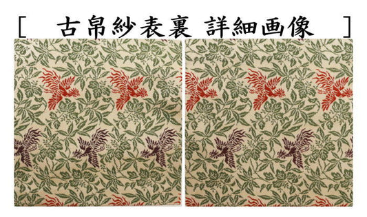 [Tea utensils/tea ceremony tools old cloth] Chinese cloth, pure silk, Shoba weave, flower and bird pattern, Manreki Shoba, made by Heian Shoen (old cloth, old fukusa, old bag, old kobukusa)
