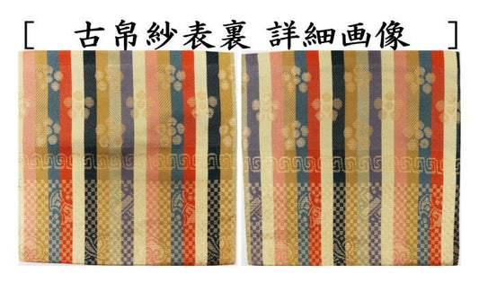 [Tea utensils/tea ceremony tools, old cloth] Pure silk, striped weave, Mikumoya donsu, made by Tomoko Tsuchida (one of the Ten Senke craftsmen, a bag maker) (old cloth, old fukusa, old bag, old cloth)