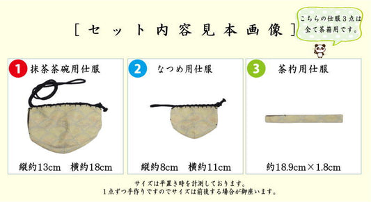 [Tea utensils/tea ceremony tools, tea box tools, dressmaking (dressmaking)] Three-piece dressmaking, pure silk, Seigaiha grass and flower pattern