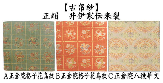 [Tea utensils/tea ceremony tools, old cloth] Pure silk, Shosoin lattice flower and bird pattern, 2 types or Shosoin eight-ridge flower pattern (Fukusha, old cloth, old cloth, kobukusa)