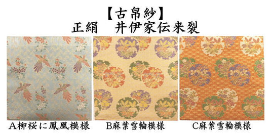 [Tea utensils/tea ceremony tools, old cloth] Pure silk, handed down by the Ii family, willow cherry blossom with phoenix pattern or hemp leaf snow circle pattern (old cloth, old fukusa, old bukusa, kobukusa)