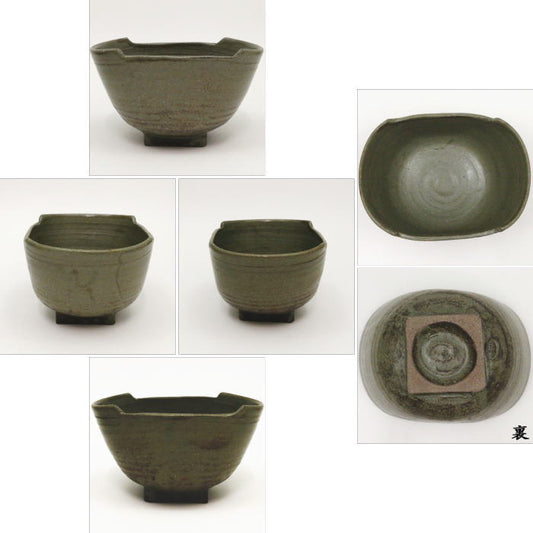 [Tea utensils/tea ceremony tools Matcha tea bowl] Korean Karatsu, Geta shape, Cross-cut high base, Made by Sakurei Okamoto (Geta shape, Shoe shape, Shoe shape)