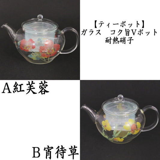 [Teapot GKP-27A] CELEC Glass Rich and delicious V-pot, Red Hibiscus or Evening Grass, Heat-resistant glass, 500ml