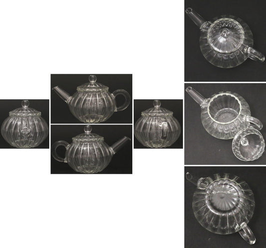 [Sencha tea utensils teapot] Back-hand teapot, glass (crystal), chrysanthemum shape, large, heat-resistant glass, approx. 200ml