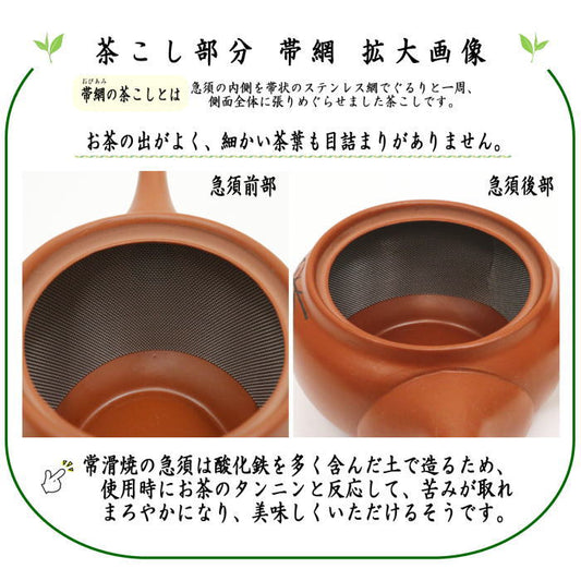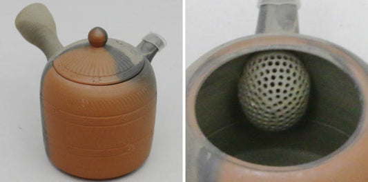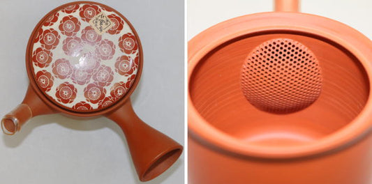 [Teapot] Tokoname ware, red clay, flat mesh (flat net), approx. 630ml (35 size), cylindrical