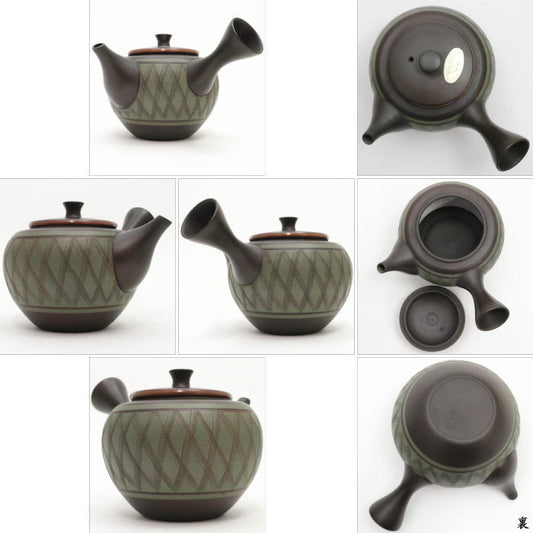 [Teapot] Banko ware (Banko ware) Cylindrical small cut pattern ceramic mesh Iroku Touen