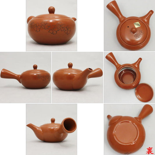[Teapot] Red clay, cherry blossom, belt net, approx. 360ml