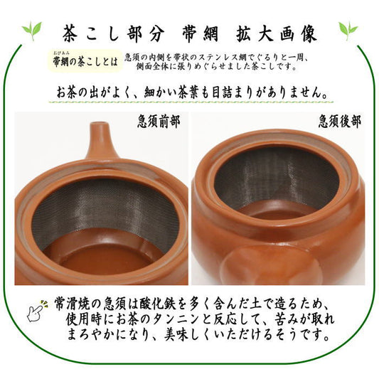 〇 [Teapot] Tokoname ware, flat round, red clay, belt net (belt net), approx. 530ml (No. 30), made in Japan