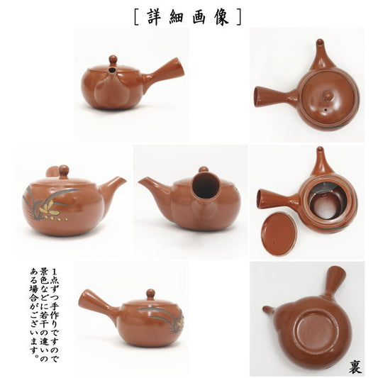 [Teapot] Tokoname ware, red clay, orchid, belt net, approx. 540ml