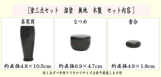 [Tea utensils/tea ceremony tools, three-piece set for tea boxes, lacquerware (lacquerware)] Plain lacquerware, tea caddy, incense holder, tea whisk holder three-piece set, wooden three-piece set for tea boxes