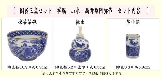[Tea utensils/tea ceremony tools 3-piece set for tea box] Ceramic 3-piece set (3 pieces of ceramics) Shozui Sansui by Shoami Takano (matcha tea bowl, tea shaker, tea towel case) (3-piece set for tea box, 3-piece ceramic set)