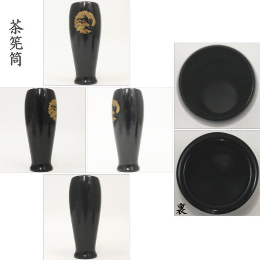 [Tea utensils/tea ceremony tools, three-piece set for tea box] Lacquer three-piece set, black lacquer, flower circle lacquer (tea whisk tube, tea caddy, incense holder), made by Nakamura Muneyoshi, wooden three-piece set for tea box