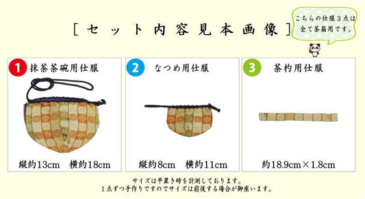 [Tea utensils/tea ceremony tools, tea box tools, tea wrapping] Three-piece tea wrapping, pure silk, checkered flower and butterfly pattern