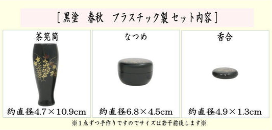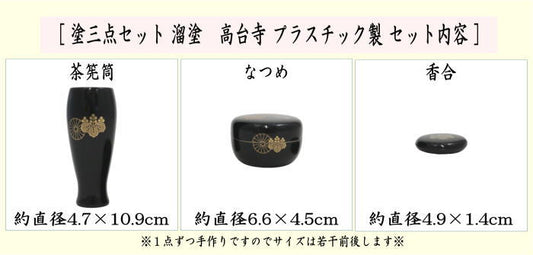 〇 [Tea utensils/tea ceremony tools, three-piece set for tea box] Lacquer three-piece set, Kodaiji black lacquer (tea whisk tube, jujube, incense holder) Made of plastic