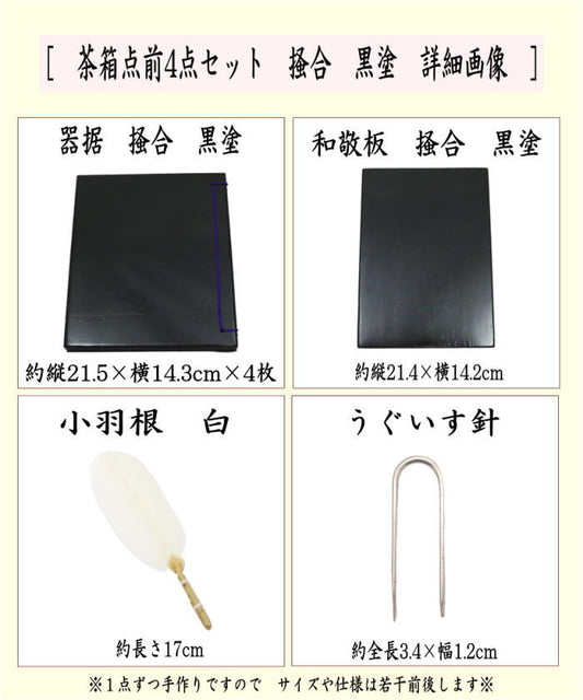 【茶器/茶道具 茶箱点前道具】 茶箱点前4点セット 掻合 黒塗り (器据 黒塗り・和敬板 黒塗り・小羽根 白・うぐいす針) (柿合わせ・柿合せ・柿合・掻き合せ・掻き合わせ・掻合わせ・掻合せ)