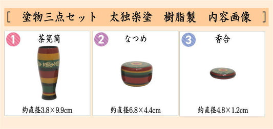[Tea utensils/Tea ceremony tools Three-piece set for tea boxes/Tea box tools] Lacquer Three-piece set Thick top lacquer (tea whisk tube, tea caddy, incense holder) Resin Three-piece set for tea boxes