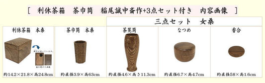 [Tea utensils/tea ceremony tools, tea box] Rikyu tea box, mulberry tea box, tea towel holder, made by Seichuusai Inao, genuine mulberry + 3-piece set, female mulberry included