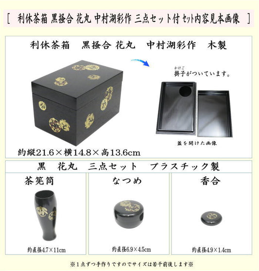 【茶器/茶道具 茶箱道具】 利休茶箱 黒掻合 花丸 三セット点付き 中村湖彩作 (柿合わせ・柿合せ・柿合・掻き合せ・掻き合わせ・掻合わせ・掻合せ)