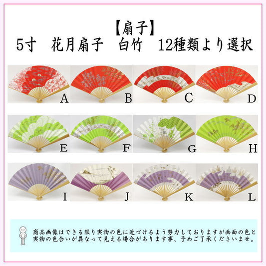 [Tea Utensils/Tea Ceremony Utensils Folding Fan] 5-inch Kagetsu Fan (Kagetsu Folding Fan) White Bamboo Choose from 12 types.