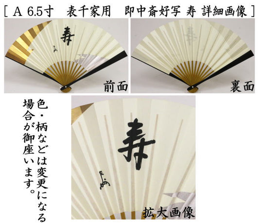 [Tea utensils/tea ceremony tools, folding fan] 6.5 inch, Omotesenke style, yellow-dyed bone, copy of Jikuchuusai's favorite, Kotobuki or Zuiun, unisex, choose from 2 types