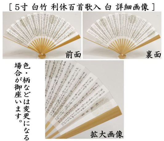 [Tea utensils/tea ceremony tools, folding fan] 5-inch white bamboo, Rikyu Hyakushu, white or pink, for women, choose from 2 types
