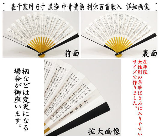 [Tea utensils/tea ceremony tools, folding fan] Black dyeing, for Omotesenke, yellow dyeing of the bone, Rikyu Hyakushu, 6 sun or 6.5 sun, choose from two types