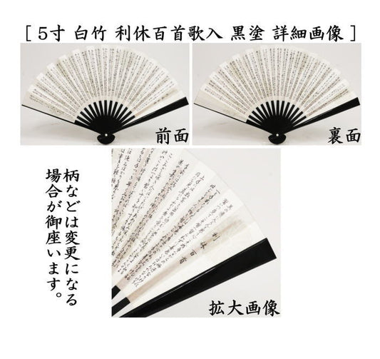 [Tea utensils/tea ceremony tools, folding fan] 5-inch, with Rikyu Hyakushu poems, black or lacquer, for women, choose from 2 types