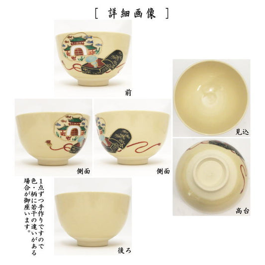 〇【Tea utensils/tea ceremony tools Matcha tea bowl with the theme "Dream"】 Theme tea bowl, copy of Ninsei, First dream, made by Kato Gozan (Zodiac snake, theme dream) (First Fuji, second hawk, third eggplant, theme dream, imperial theme dream)