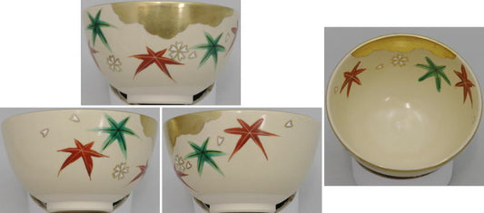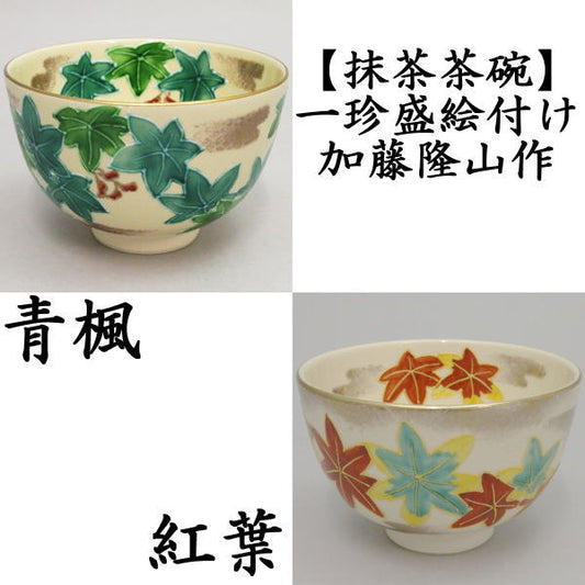 〇 [Tea utensils/tea ceremony tools Matcha tea bowl] Ichinmori painting (Ichin Icchin) Green maple or maple leaves Made by Ryuzan Kato