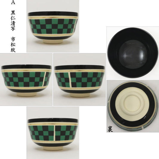 [Tea utensils/tea ceremony tools Matcha tea bowl] Black Ninsei checkered pattern or Ninsei hemp leaf pattern Made by Eiko Miyaji