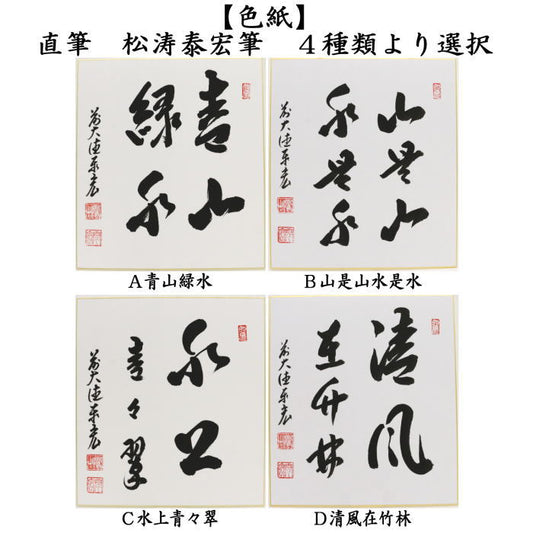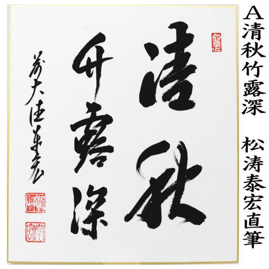 ◎【茶器/茶道具 色紙】 直筆 清秋竹露深又は秋山風月清又は昨夜一聲雁(昨夜一声雁)又は清風万里秋 松涛泰宏筆(宗潤) 4種類より選択 (前大徳寺派)