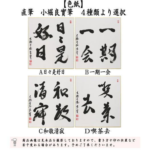◎【Tea utensils/tea ceremony tools colored paper】Handwritten "Every day is a good day" or "A once-in-a-lifetime encounter" or "Harmony, respect, purity, tranquility" or "Tea drinking" by Kobori Yoshimi