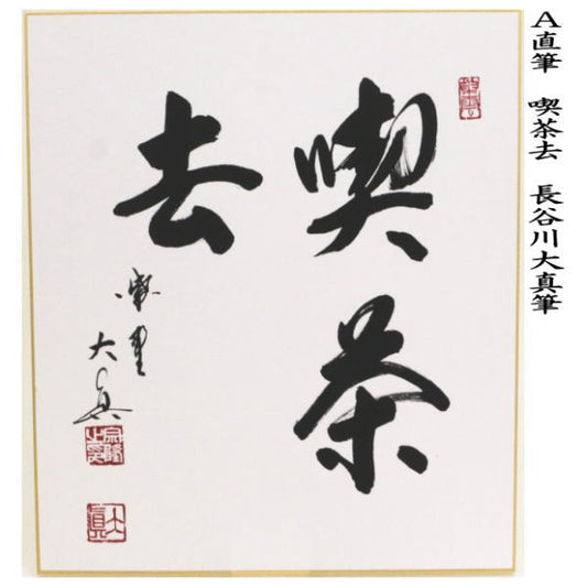 [Tea utensils/tea ceremony tools, colored paper] Handwritten: Drinking tea, once in a lifetime, harmony, respect, serenity, and every day is a good day by Hasegawa Daishin