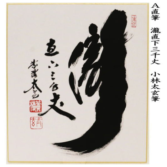 [Tea utensils/tea ceremony tools colored paper] Handwritten Waterfall Directly Below 3,000 Feet or White Cloud Embracing Mysterious Stone or Waterfall by Kobayashi Taigen