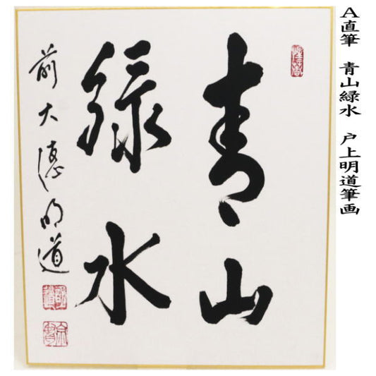 〇 [Tea utensils/tea ceremony tools, colored paper] Handwritten: Green mountains and green water, or mountains are landscapes and water, or green on the water, or fresh breezes in the bamboo forest, by Matsunata Yasuhiro (Muneyoshi)