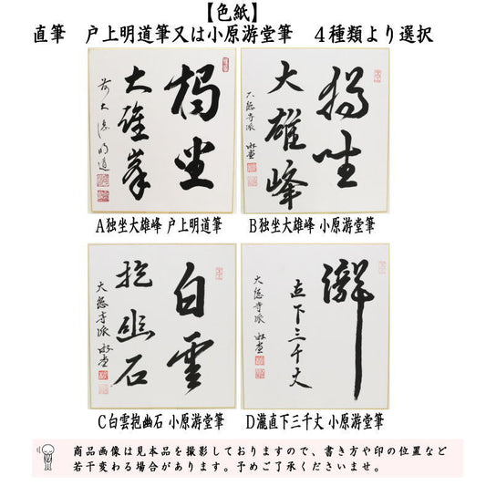 ◎【Tea utensils/tea ceremony tools colored paper】Handwritten: Seated alone on the Great Yuho peak by Togami Myodo or Seated alone on the Great Yuho peak by Hakuun-Holding Yuseki or Waterfall Directly Below 3,000 Feet by Ohara Yudo