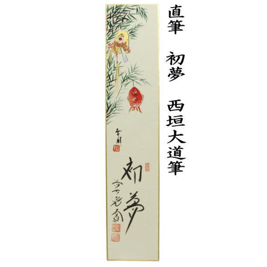 〇【茶器/茶道具 短冊画賛 御題「夢」】 直筆 初夢 西垣大道筆 十日えびすの福笹の画 曽根幸風画(肉筆画) (干支巳 御題夢) (前大徳寺派・恵比寿・十日戎) (お題夢・勅題夢)