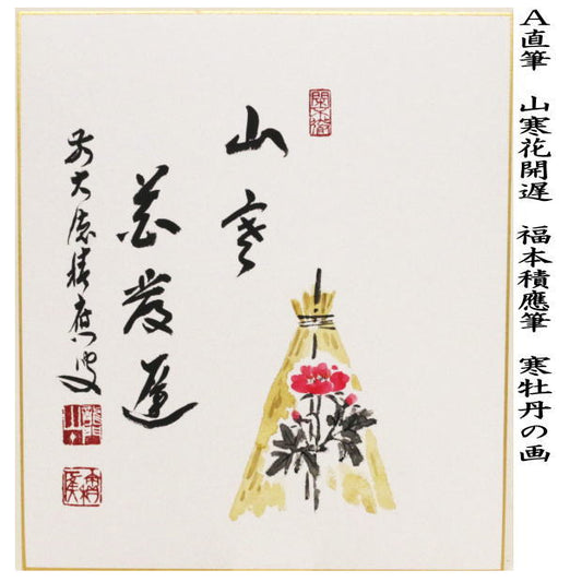 [Tea utensils/tea ceremony tools, colored paper with paintings] Handwritten painting of a winter peony by Fukumoto Tsuneo