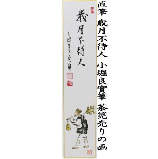 〇 [Tea utensils/tea ceremony tools, short poems, inscriptions] Handwritten, "Time is not waiting for you," by Kobori Yoshimi, a painting of a tea whisk seller