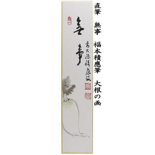 〇 [Tea utensils/tea ceremony tools, short poems inscribed with paintings] Handwritten, safe, by Fukumoto Tsuneo, a painting of a radish